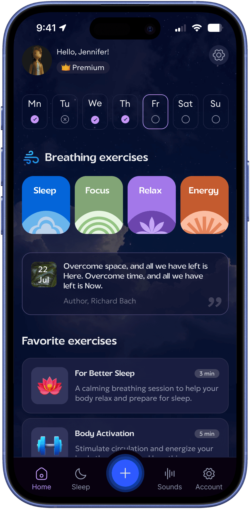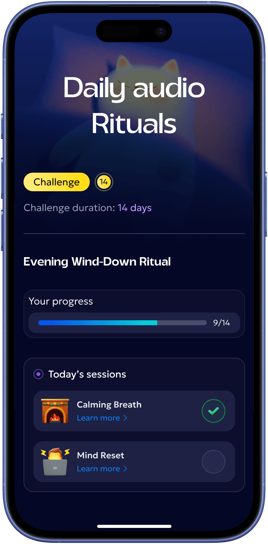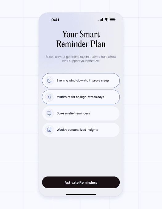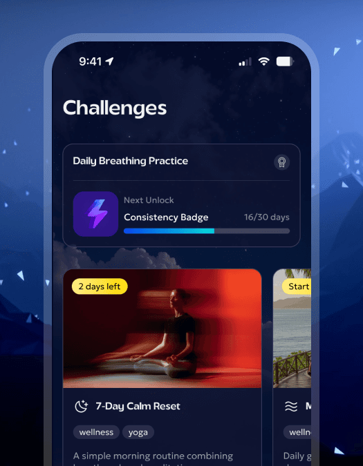 A personalized breathwork and mindfulness app built around goals, not sessions. Beyond breathing practices, the app offered structured courses on focus, sleep, and productivity — with a fully tailored experience