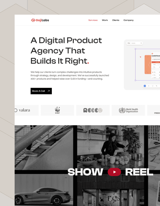 A full-scale redesign of a 50+ page marketing website for a product development agency covering page templates, case studies, marketing assets, and a new brand guideline.