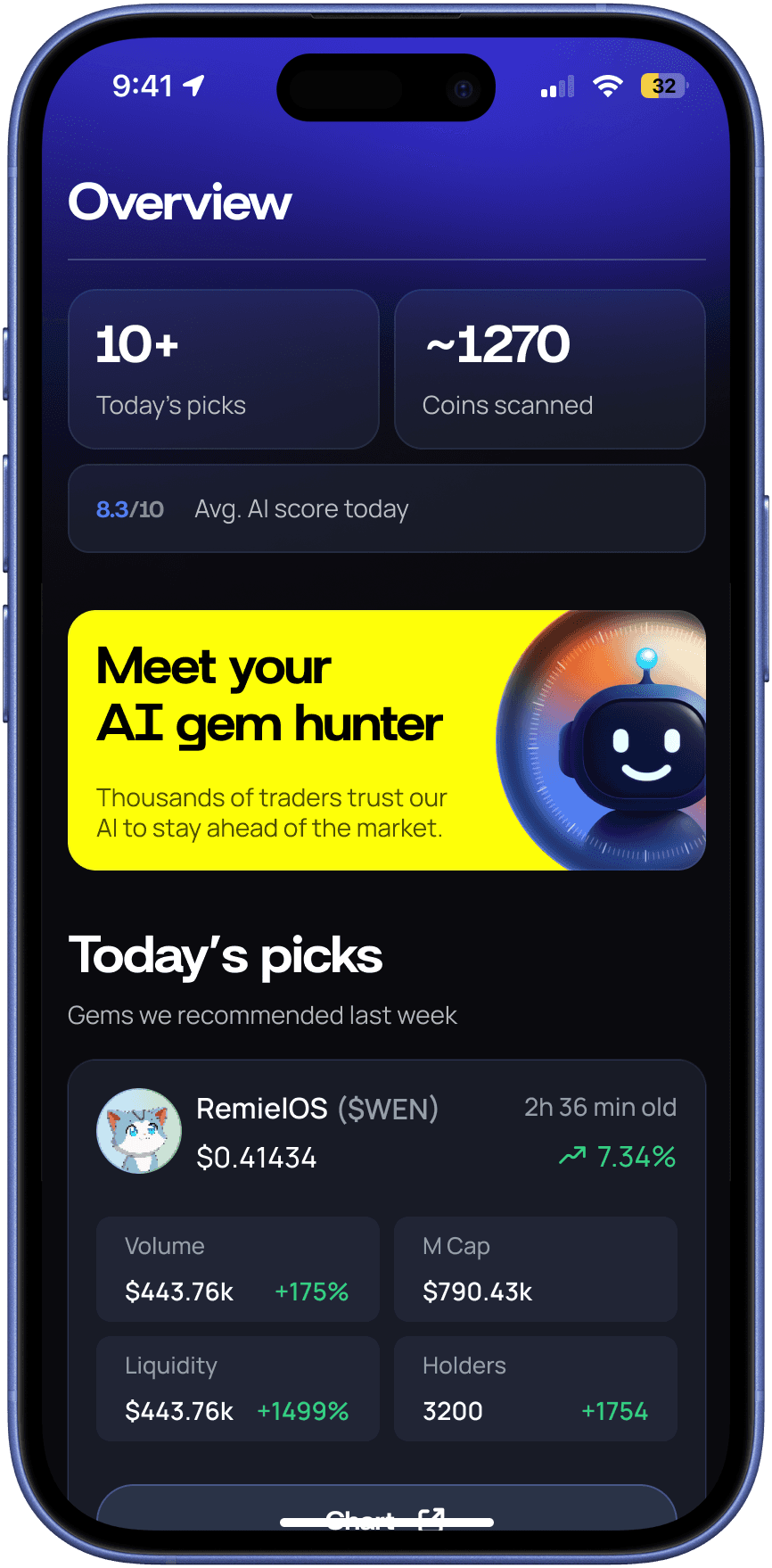 The app combines AI-driven research across 20+ platforms, a daily curated token watchlist, and an AI assistant that turns complex market data into clear, confident guidance.